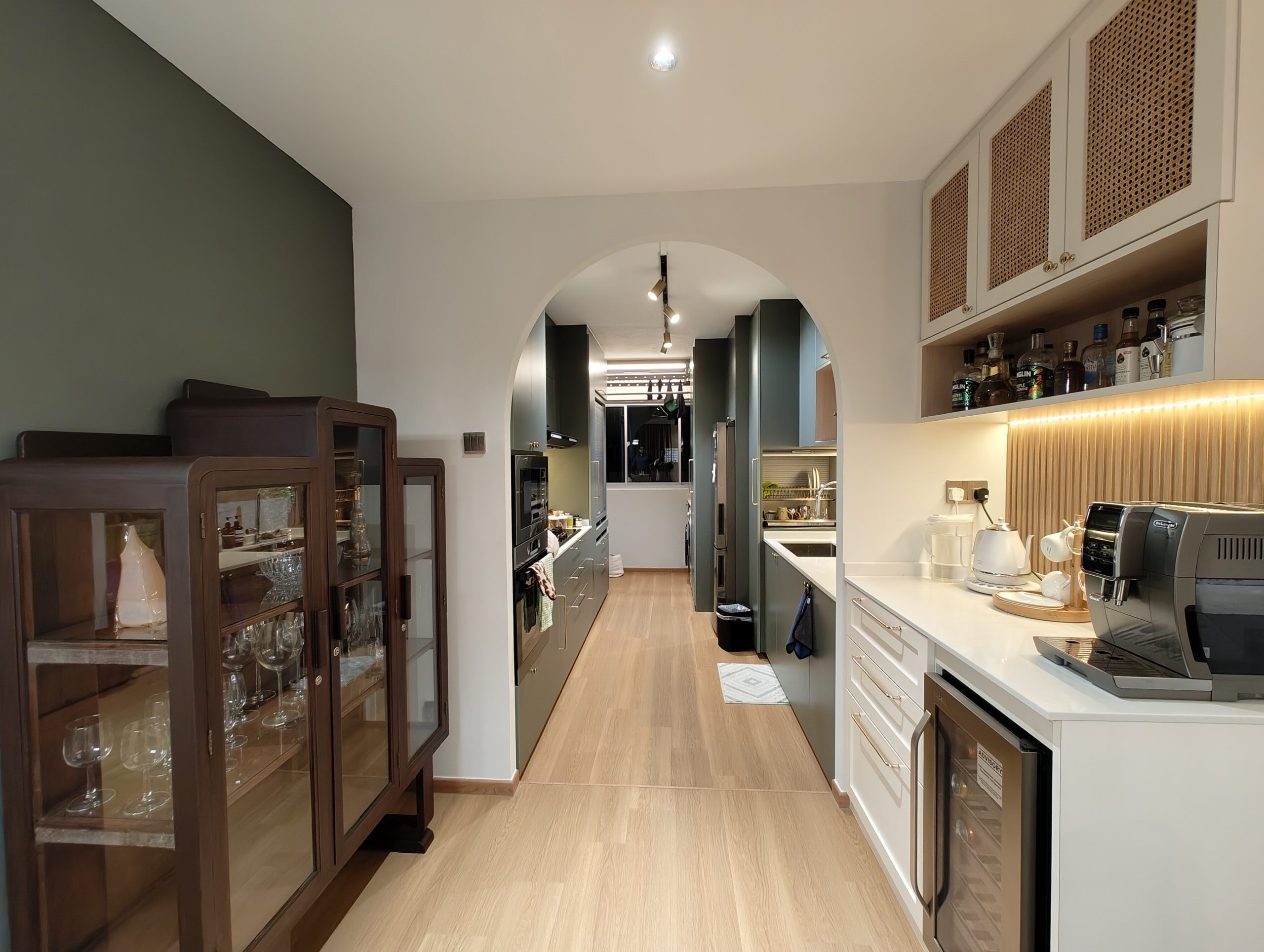 We transformed a compact kitchen into a seamless blend of warmth and function. The redesign focused on maximising space efficiency while maintaining an inviting flow throughout. Custom cabinetry, soft lighting, and a refined material palette create a balance of elegance and practicality. By refining sightlines and integrating hidden storage, we turned a busy corner of daily life into a calm, beautiful, and highly functional heart of the home.