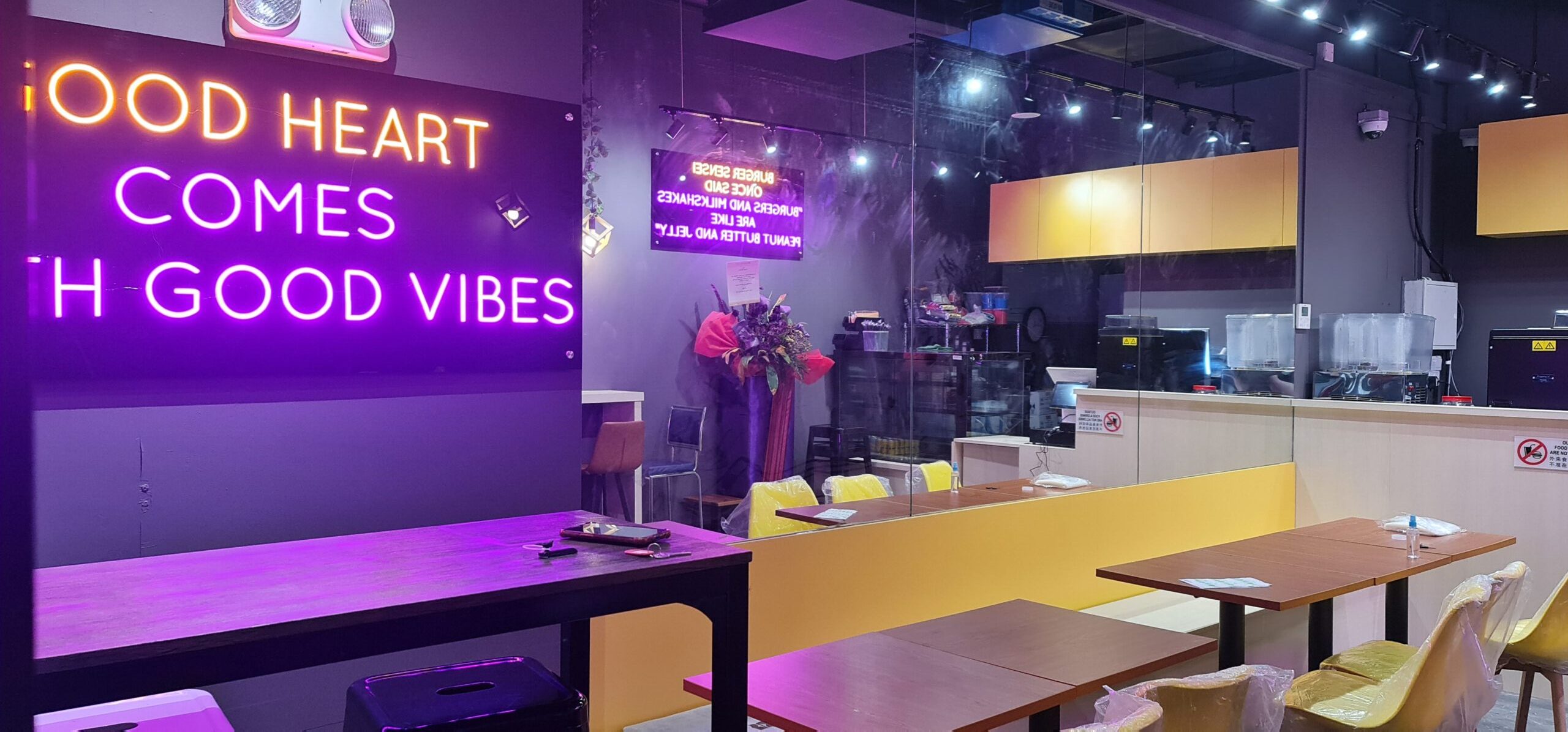 For this F&B concept, our goal was to bring the brand’s youthful energy and warmth to life through colour, lighting, and flow. We designed a space that feels upbeat and welcoming — where every corner sparks conversation and every detail reflects the brand’s personality. The use of bold hues, neon signage, and balanced materials creates a memorable experience that invites customers to stay, share, and return. The result is not just a café, but a lively atmosphere that embodies the heart of the brand.